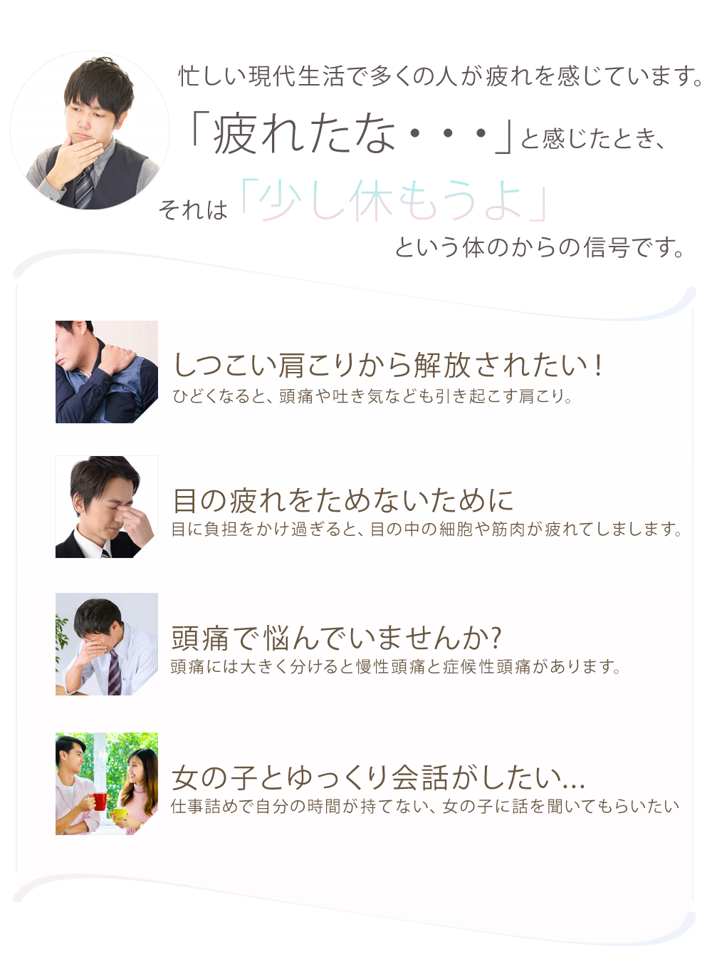 初めて利用される方・施術を受ける事が少し不安な方へ