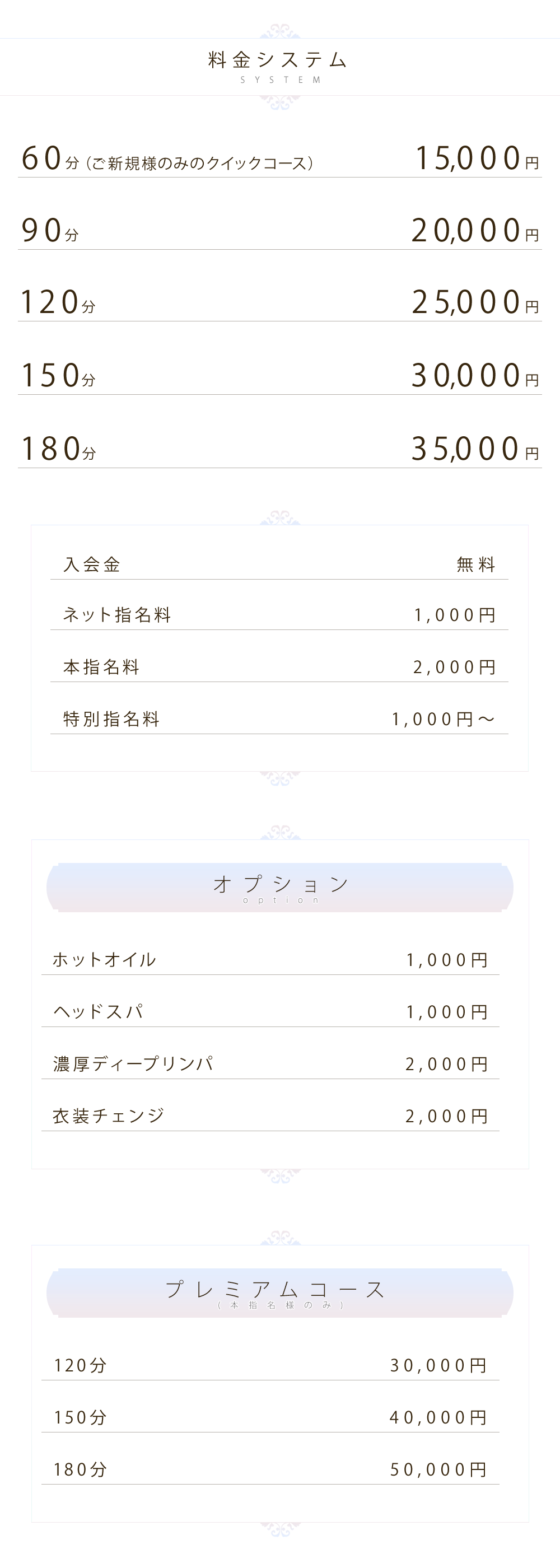 - 当店は風俗店ではありません。性的なサービスの強要、セラピストへのタッチはお断りいたします。